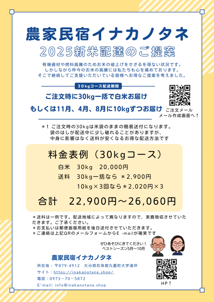 なお農家民宿イナカノタネでは、もちろん自家製アイガモ米をお出ししております。